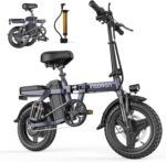 • Powerful and Efficient Performance: Powered by a 400W motor with a peak output of 500W. this e-bike comes equipped with a 499Wh removable battery that charges in just 5 hours. It can travel up to 28 miles on a single charge. climb 37-degree inclines effortlessly. and reach speeds of 20mph safely. Weighing 63.9 lbs. it supports a maximum load of 220 lbs and features 14×2.125 inch wheels for energy efficiency and grip.